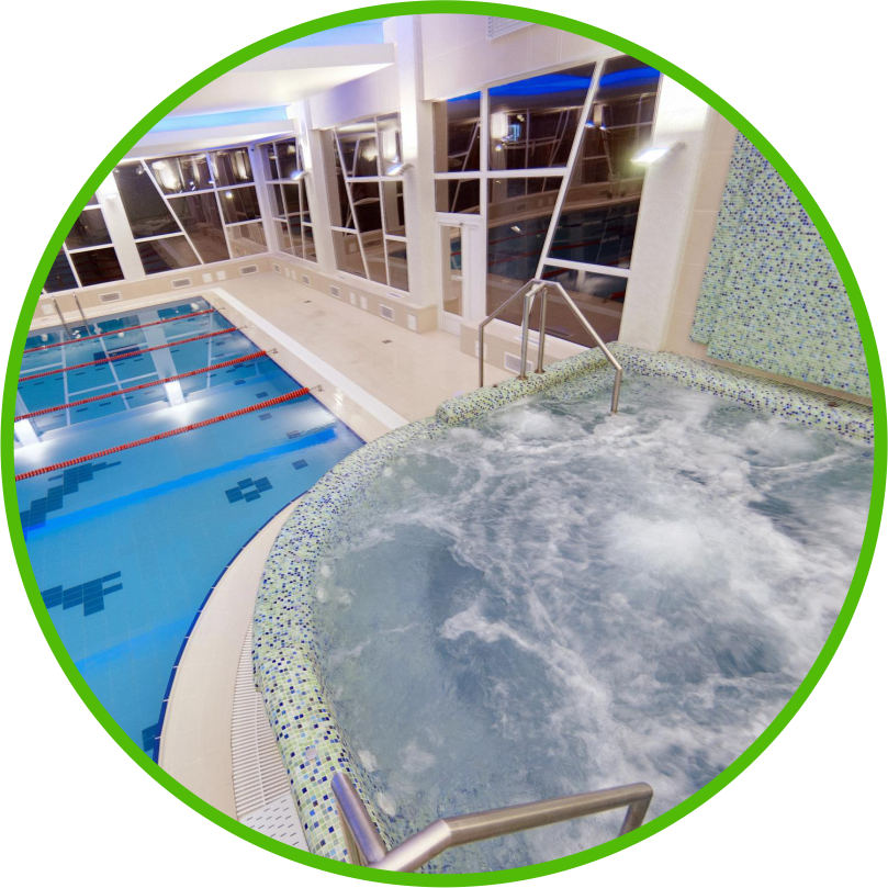Большие комфортные бассейны — преимущественно с морской водой. Специальный состав на основе натуральной морской соли оказывает благотворное влияние на организм и не сушит кожу