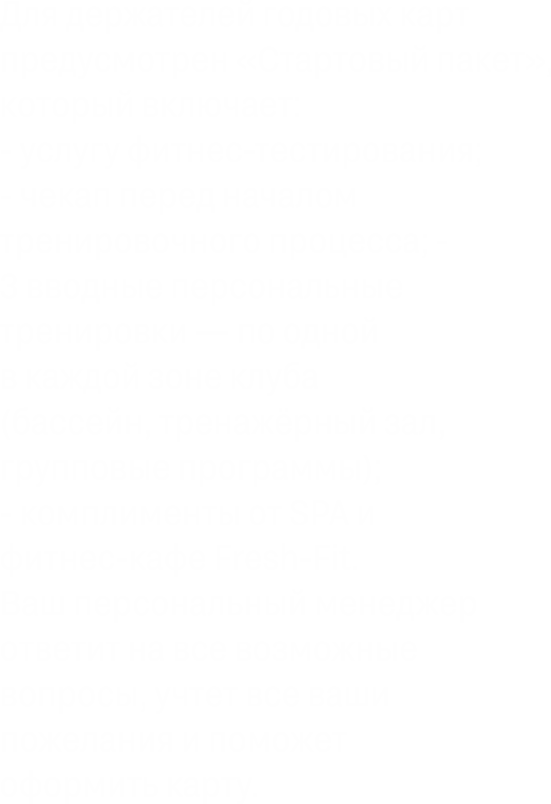 Наши тренеры научат вас правильной технике выполнения упражнений, обеспечат личную поддержку и консалтинг